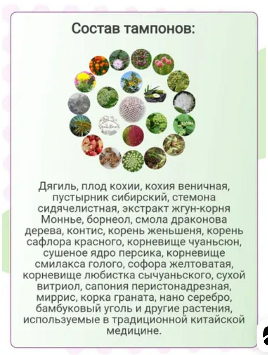 Как и обещала смотрим более подробно состав тампона👇🏻 Если мы почитаем, мы увидим множество перечисленных компонентов. Скорее всего, вникать и гуглить каждый, даже малоизвестный компонент, мы не станем. Наносеребро здесь сочетается чудесным образом с травяным составом. Возникает вопрос, насколько это проверено. Ну, состав травяной. Хорошо, допустим, это имеет место быть.