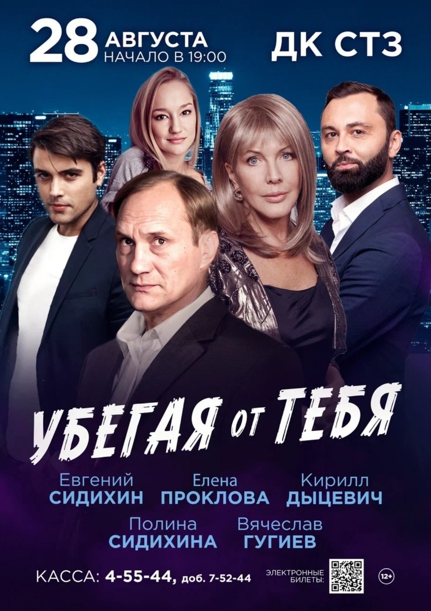28 августа в Полевском на сцене ДК СТЗ – Елена Проклова, Евгений Сидихин, Кирилл Дыцевич и другие в романтической комедии «Убегая от тебя»!