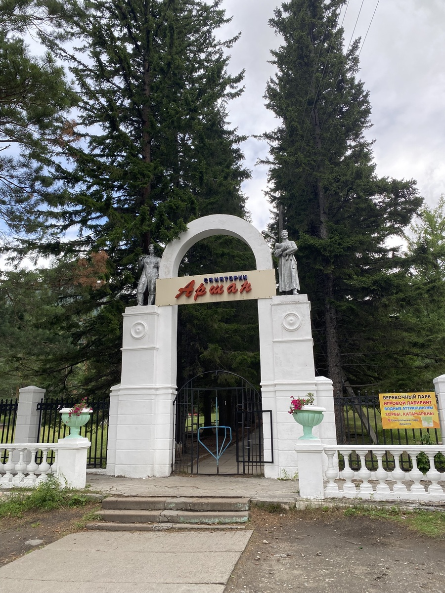 Для того, чтобы забраться на хребет, нужно дойти до парка. Здесь все напоминает СССР. Несмотря на то, что я родилась уже в России, этот парк напомнил мне детство. В Иркутске было в парках раньше так же: непонятные статуи, фундаментальные скамейки и урны из цемента, старый асфальт, памятники, деревянные здания курортов. Листайте карусель.