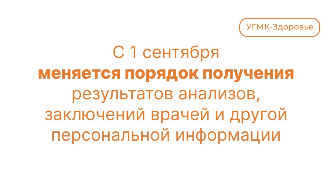 ❗️С 1 сентября 2025 года медицинский центр «УГМК-Здоровье» прекращает рассылку результатов анализов, заключений врачей и другой персональной