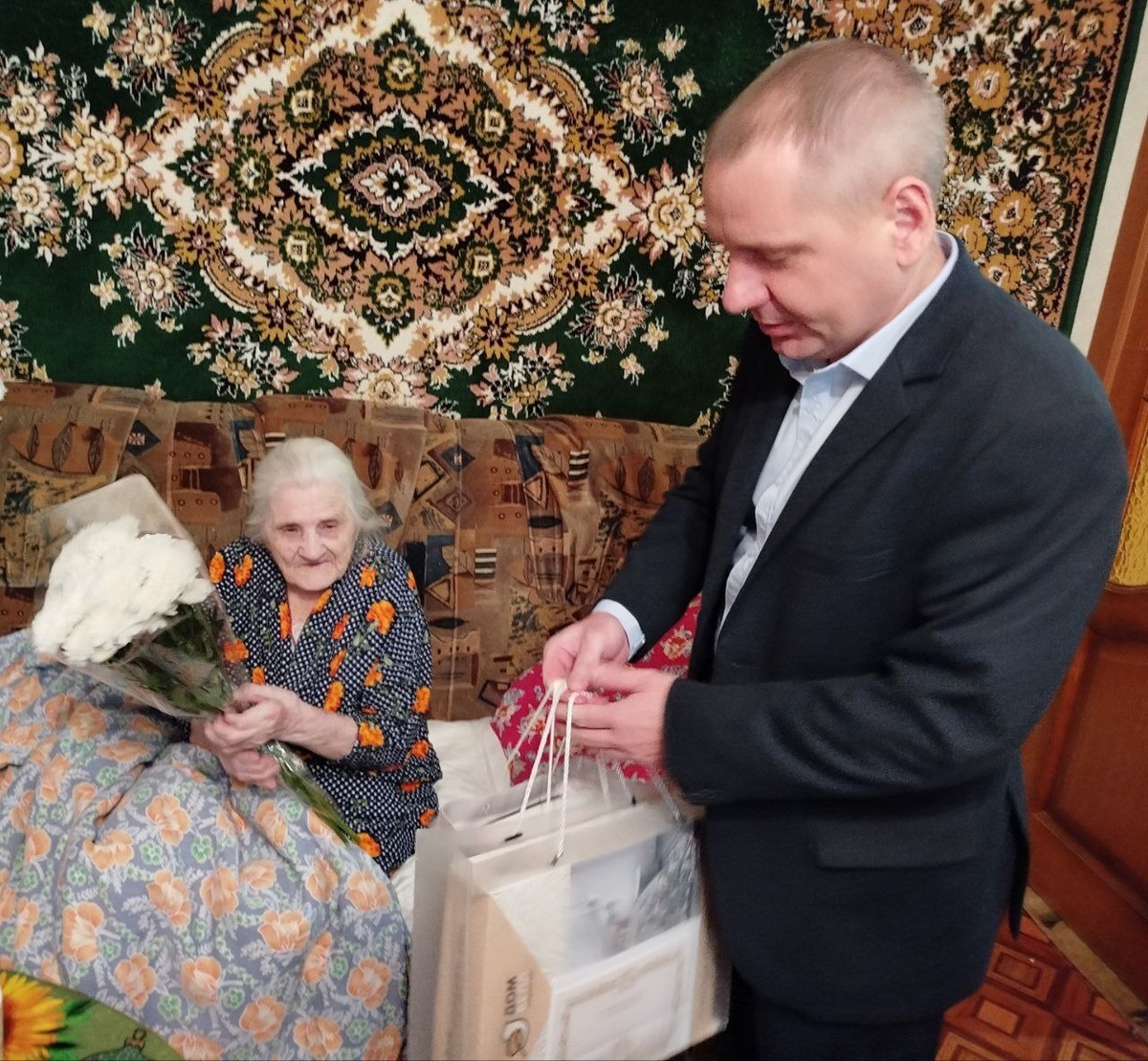 Курянка Анастасия Андриановна Сидорова отметила 100-летие С вековым юбилеем жительницу Курска поздравил председатель комитета социальной защиты населения города Сергей Брежнев. Сергей Николаевич пожелал имениннице долгих лет, благополучия, уважения, мира, радости, заботы и чтобы близкие всегда были рядом. Фото: администрация города Курска.