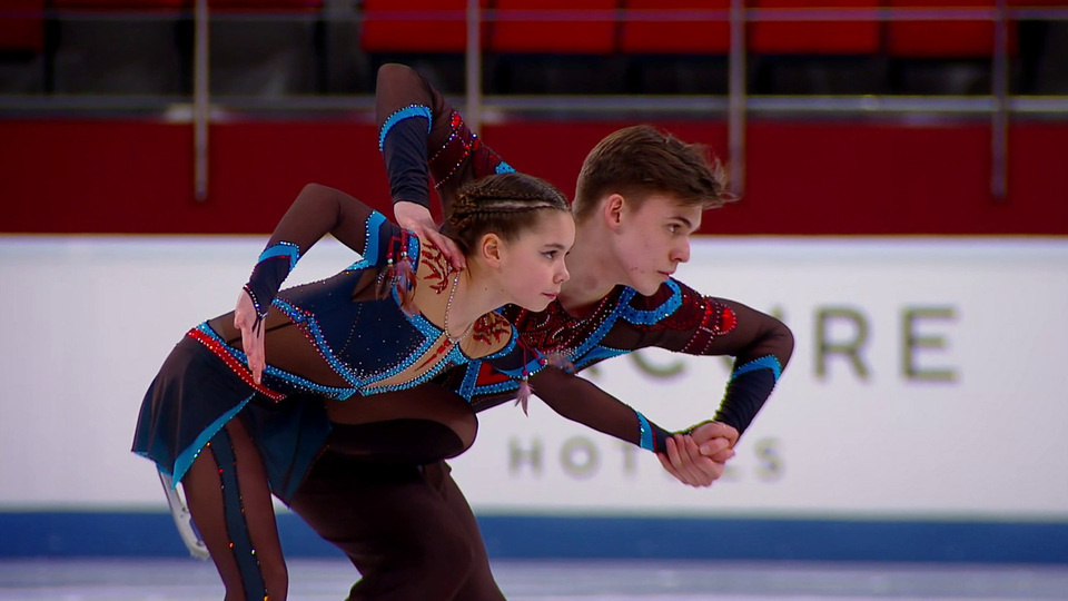 Полина Шешелева – Егор Карнаухов. Школа Этери Тутберидзе. Начало огненное! Но после падения с выброса Полина поникла. Увы. Ещё сильный рассинхрон на вращении. Программа перспективная, фигуристы её чувствуют. Тодес - третьего уровня. Подкрутка и поддержка на высочайшем уровне.
