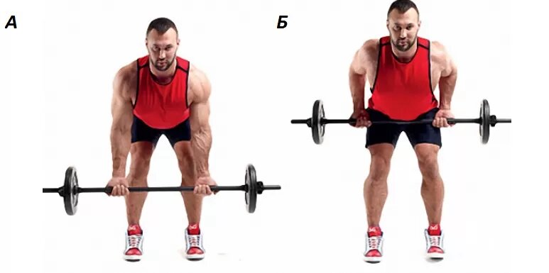 Ноги на ширине плеч, колени слегка согнуты. Возьмите штангу хватом чуть шире плеч. Сохраняя естественный прогиб в пояснице и с напряженным прессом, наклоните корпус вперед. Доведите угол наклона до 45-60 градусов или почти параллельно полу – чем ниже, тем сильнее вовлекаются широчайшие. Тяните штангу строго вдоль ног к нижней части живота или пупку, ведя локти высоко и строго назад. Сознательно сводите лопатки в верхней точке движения.