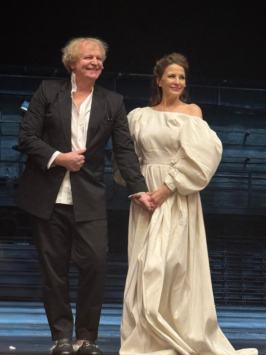 Настолько правдоподобно играют Сергей Юшкевич и Евгения Крюкова, что я испытывала стыд, глядя на них, будто мешаю, присутствую при интимном моменте наслаждения друг другом. Как же чувственно Клавдий гладил оголенную спину королевы, нашептывал ей ласковые слова, прижимал к себе – это необычайно завораживающее зрелище, и как же неуместно врывался окружающий мир в их идиллию. Какими бы ни были намерения нового короля и его способы прихода к власти, но очевидно, что в жену свою влюблен безумно. Возможно, эта женщина настолько свела его с ума, что все поступки были совершены только ради нее, из желания обладать Гертрудой в первую очередь, а уж потом короной. Здесь в коварном братоубийце мы видим влюбленного мужчину.