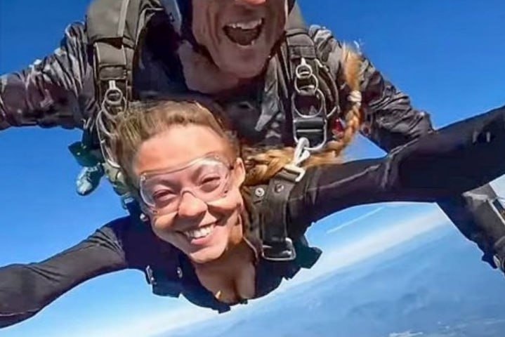 Сидни Суини, которая, напомним, просит её не объективизировать и не сексуализировать, прыгнула с парашютом с глубоким декольте и попала во
