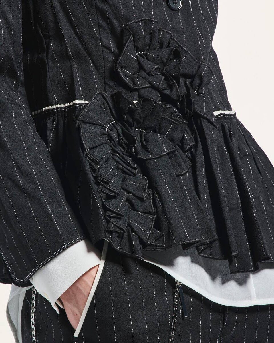 Классика, переосмысленная как искусство🖤 Белая полоска на черном полотне оживает благодаря изысканным деталям: четкой контрастной строчке, объемным архитектурным складкам и уникальным, вручную мятым микро-плиссированным оборкам, придающим каждому движению художественную динамику. 📍Ждём вас в ТРЦ Европейский, 2 этаж.