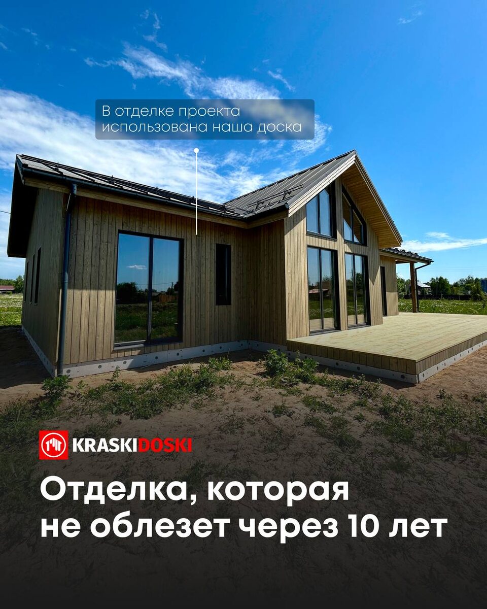 Дом из нашего флагманского продукта - скандинавской доски. Это не только красиво, но и надёжно🤌🏻 Её особенность — поверхность с «поднятым ворсом». Эта текстура создаётся специальной фрезой: волокна древесины слегка приподнимаются, поверхность становится шероховатой, и краска глубоко проникает в структуру, а не ложится поверх плёнкой. Результат: покрытие не отслаивается и служит намного дольше! Мы делаем поднятый ворс не только на лицевой стороне, но и на всех видимых поверхностях — включая закругления, пазы и шипы. Это важно, потому что: 1️⃣ Краска ложится равномерно по всей доске, без разнотонов. 2️⃣ Срок службы одинаков на каждой детали фасада. 👉 Именно поэтому дома из нашей скандинавской доски сохраняют свежий, благородный вид долгие годы. Хочешь получить просчет на отделочные материалы для вашего дома, ставь «+» под этим постом 👇🏻 #фасаддома #фасад #загороднаяжизнь #загородныйдом #дом #дача #красивыедома #современныйдом #фасады #каркасникподключ #каркасник #строительств