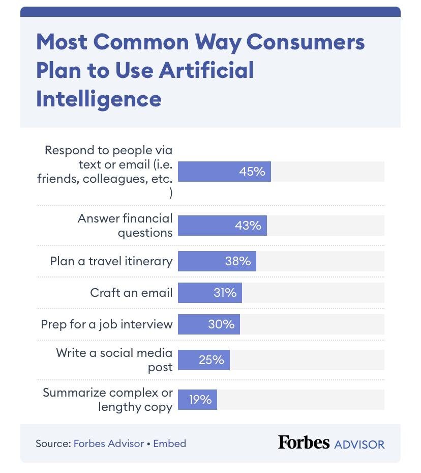 Исследование от Forbes показывает, что в большинстве случаев люди обращаются к нейросетям, чтобы подготовить ответ на письмо или сообщение, ответить на финансовый вопрос или подготовить туристический маршрут. Подробно в скриншотах. А самый популярный запрос в чатах нейросетей — «в чем смысл жизни?» 😁 Значит есть хорошая новость для вас. Чем быстрее вы освоите основной инструментарий ИИ для работы, жизни или учебы, тем более конкурентоспособными вы будете. Пишу о применении и влиянии новых технологий на бизнес и повседневную жизнь в канале Telegram: https://t.me/+YhzsyTOGTFAwZTZi