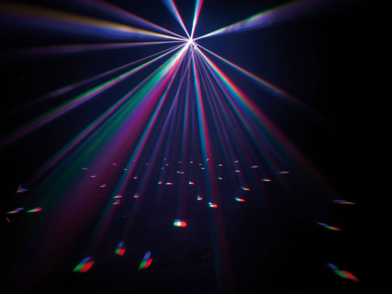 - Устройства с комбинированными эффектами — сочетают смену цветов, строб и UV-свет;