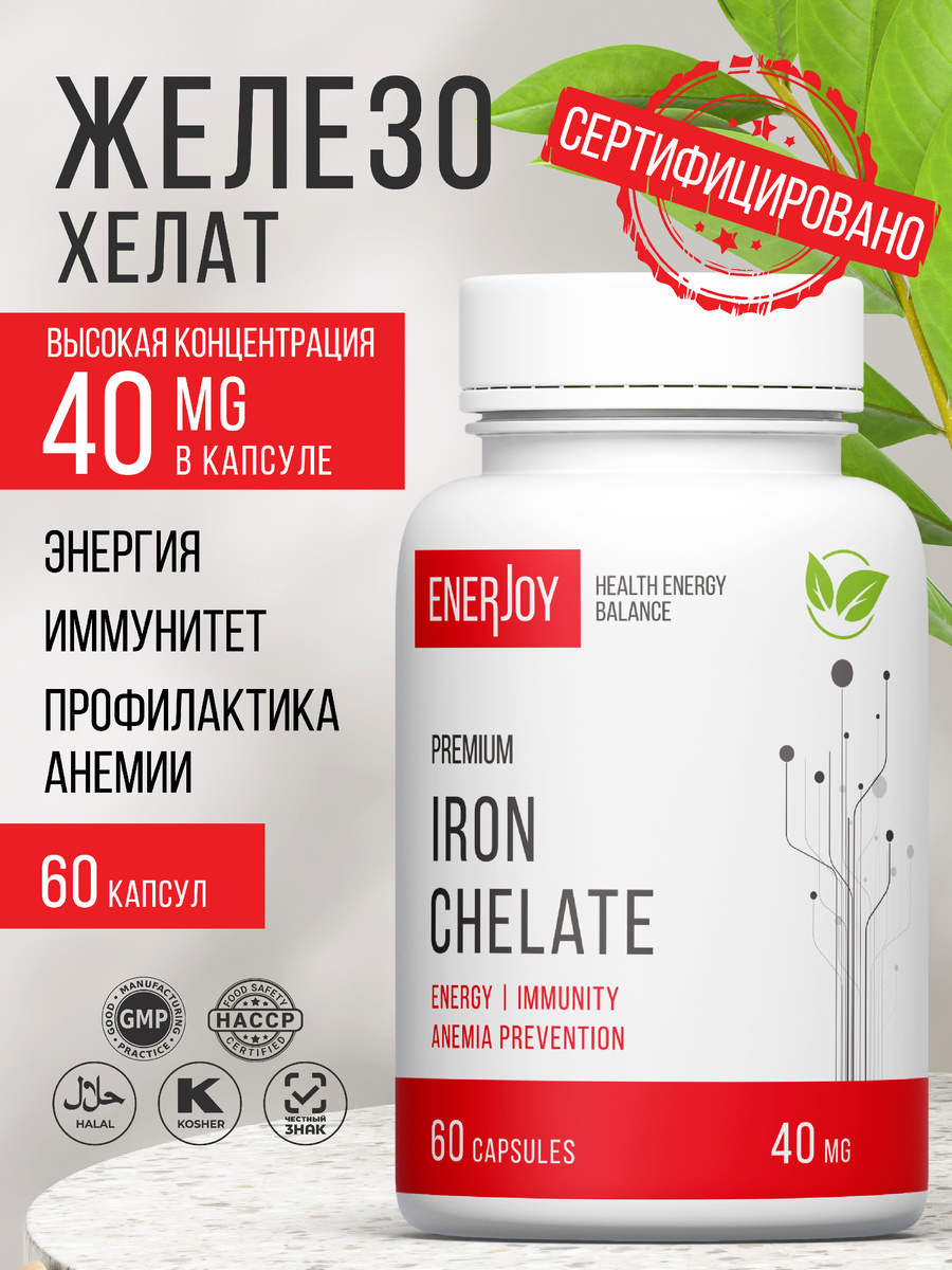 Железо — жизненно важный минерал, который играет ключевую роль в переносе кислорода по всему организму и поддержании энергии. Для женщин особенно важно поддерживать достаточный уровень железа, ведь их потребности часто выше из-за физиологических особенностей организма. 💥Почему женщинам нужно следить за уровнем железа? 1️⃣Менструации. В этот период происходит потеря крови, что может привести к недостатку железа и развитию анемии. 2️⃣Беременность. В этот важный для малыша и мамы период потребность в железе значительно возрастает для обеспечения здорового развития плода и поддержания сил мамы. 3️⃣Активный образ жизни и стресс. Дополнительные факторы, которые могут увеличить расход железа и вызвать его дефицит. Добавка “Железо хелат бисглицинат 40 мг iron ferrum” от ENERJOY — это эффективный способ восполнить дефицит железа с помощью биодоступной формы хелата бисглицината. Эта форма железа отличается высокой усвояемостью и минимальным раздражением желудка, что делает прием более комфортны