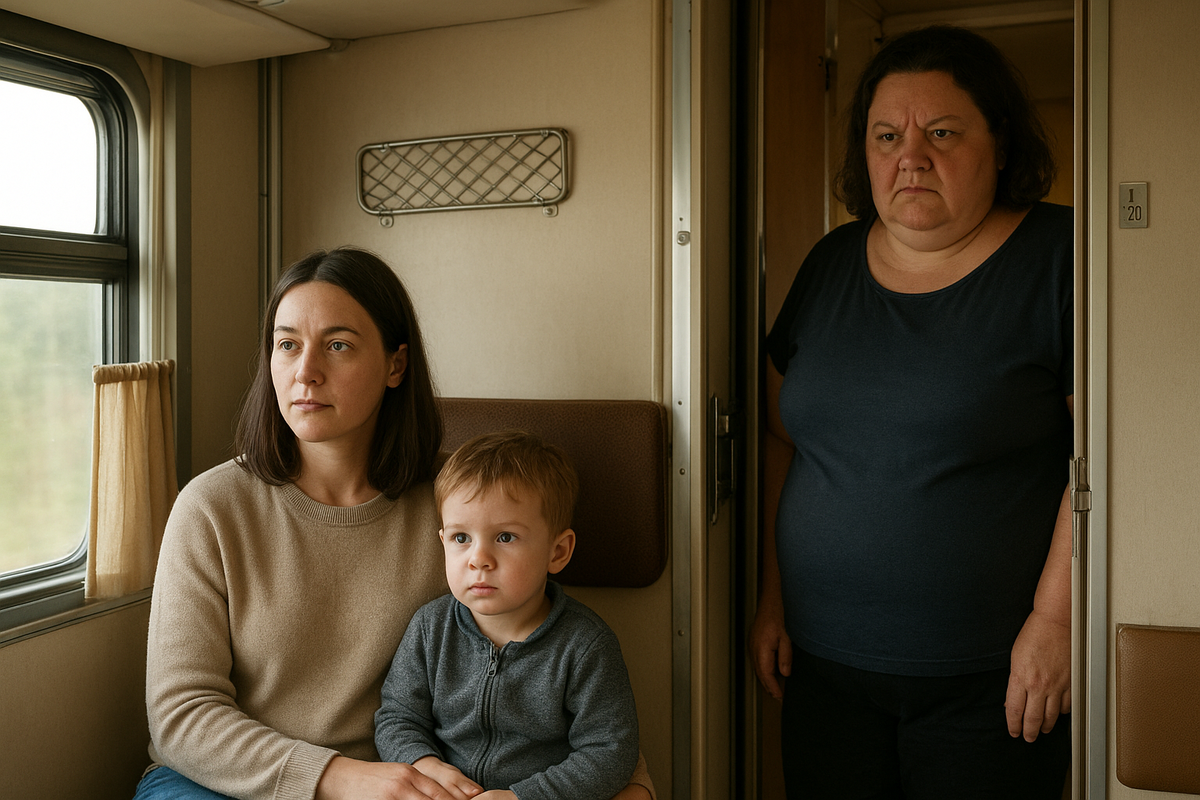 Когда проводница вошла в купе с привычной дежурной улыбкой, Марина сразу достала билеты. Всё шло обычно, пока та не приподняла бровь: — Вы выкупили все места? Даже детский для малышки? — Да, — спокойно ответила Марина. — Так удобнее. У меня трое детей, важно никому не мешать. Проводница одобрительно кивнула и вышла. Дети устроились по своим местам, поезд тронулся, и за окном поплыли перелески, поля и вечерние огни. Идеальный порядок — залог спокойствия Марина всегда всё держала под контролем. Даже переезд с тремя детьми она организовала до мелочей: продукты для дороги, пледы, игрушки разложены по сумкам. Она заранее выкупила всё купе, чтобы дорога прошла спокойно. В новом городе её ждал муж, а она везла малышей в новую жизнь. Но тревога не отпускала. Она не была из тех, кто легко меняет привычное. На нижних полках сидели близнецы Лёша и Тимур, трёхлетняя Даша устроилась рядом с мамой. Марина достала термос, разлила чай, разложила бутерброды. Всё было почти по-домашнему. Нежданная гост