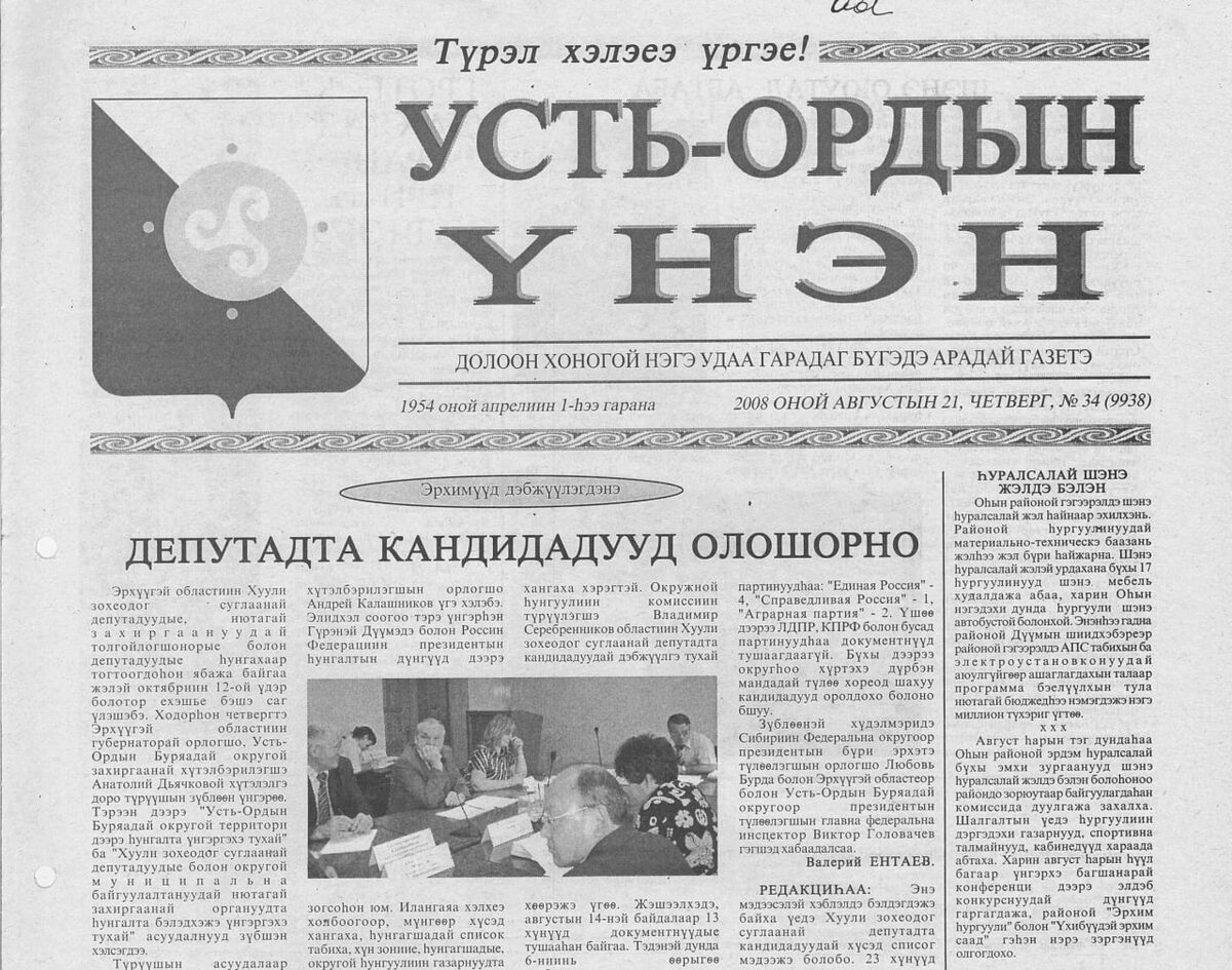 В базу данных добавлено 84 выпуска газеты «Усть-Ордын унэн» на бурятском языке за 2007-2008 годы
