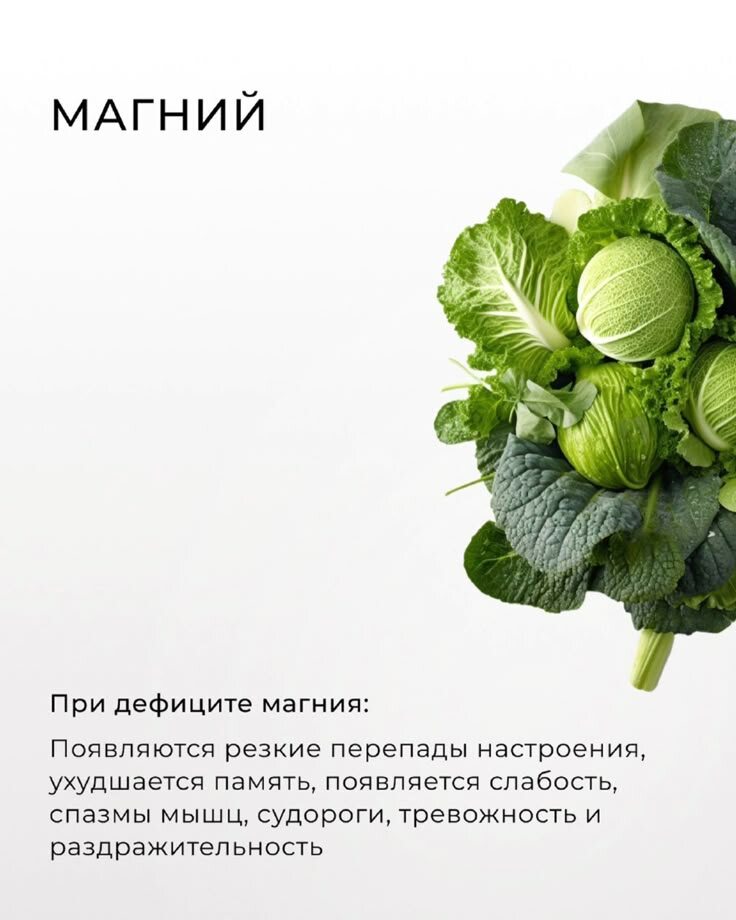 1. Поддержка нервной системы: Магний помогает снизить уровень стресса и тревожности, улучшая общее психоэмоциональное состояние. 2. Здоровье сердца: Он способствует нормализации сердечного ритма и снижает риск сердечно-сосудистых заболеваний. 3. Кости и зубы: Магний участвует в формировании и поддержании крепких костей и зубов, предотвращая остеопороз. 4. Энергетический обмен: Этот минерал необходим для выработки энергии в клетках, что помогает нам быть более активными и бодрыми. 5. Регуляция уровня сахара: Магний способствует улучшению чувствительности к инсулину и помогает контролировать уровень сахара в крови. 🥦 Где найти магний? Магний содержится в различных продуктах: • Орехи (особенно миндаль и кешью) • Семена (тыквенные и подсолнечные) • Зелень (шпинат, брокколи) • Цельнозерновые продукты • Бобовые 💡 Советы по потреблению магния: • Старайтесь включать в свой рацион разнообразные источники магния. • Если чувствуете усталость, тревожность или проблемы со сном - возможно, вашему