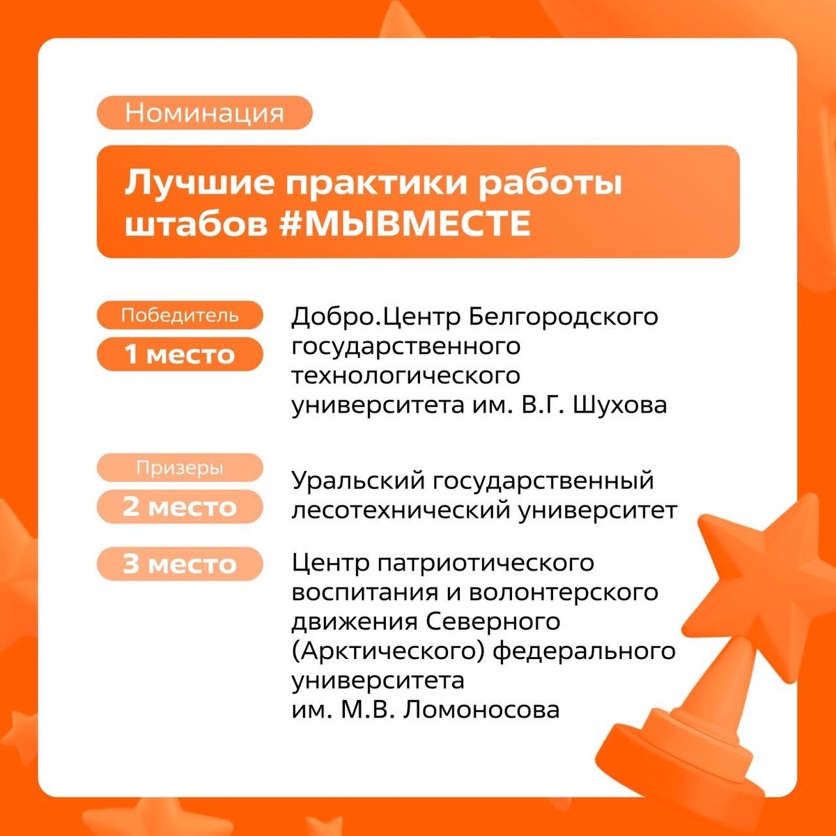🎉 Уральский государственный лесотехнический университет занял второе место по подведению итогов Всероссийского конкурса лучших практик добровольческой и общественной деятельности в вузах России!🔥 Поздравляем коллег!😉 - В декабре этого года победители конкурса отправятся в Москву на Международный форум гражданского участия #МЫВМЕСТЕ, где смогут представить свои проекты всей стране.🤝