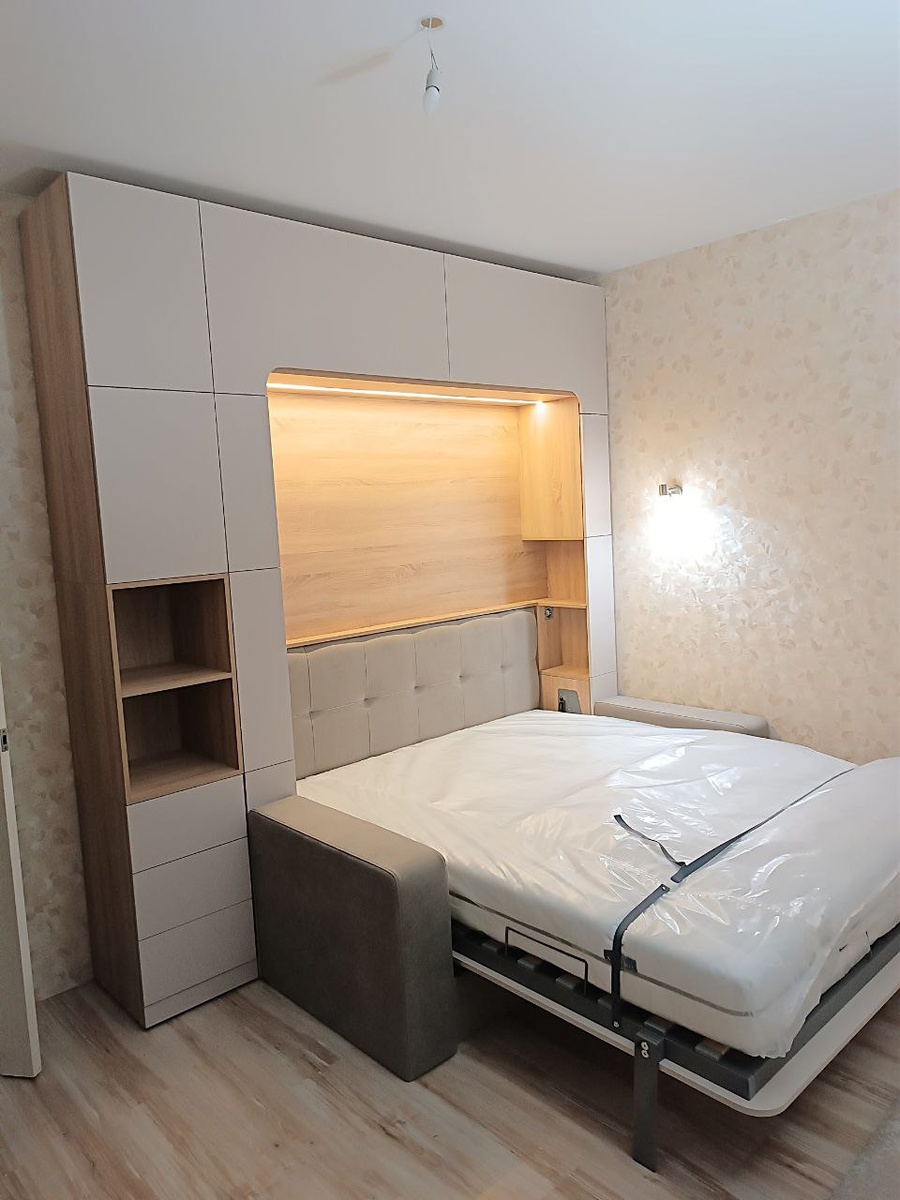 Наша компания производит кровати-трансформеры, с которыми можно преобразовать из гостиной в спальню и обратно за один миг