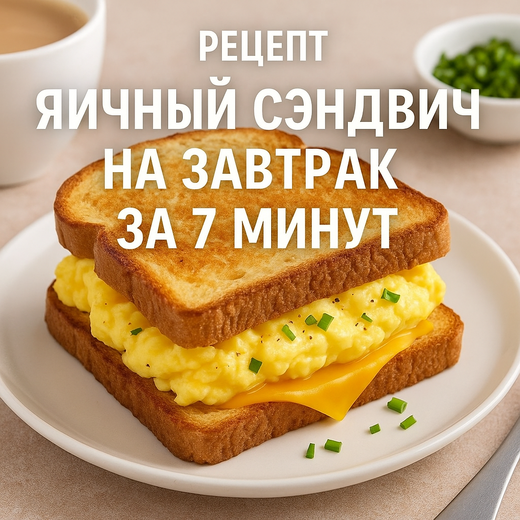 Вступление Утро — время, когда каждая минута на вес золота. Но даже в самый плотный график не стоит жертвовать полноценным завтраком. Предлагаем простой и быстрый рецепт яичного сэндвича, который готовится всего за 7 минут. Он сытный, вкусный и дает заряд энергии на всю первую половину дня. Ингредиенты (на 1 порцию) ⦁ Хлеб (тостовый или любой другой) — 2 ломтика ⦁ Яйцо — 1 шт. ⦁ Сливочное масло или майонез — 1 ч. ложка ⦁ Сыр (твердый или плавленый) — 1–2 ломтика ⦁ Соль, перец — по вкусу ⦁ Зелень (укроп, петрушка, зеленый лук) — по желанию Оборудование ⦁ Сковорода с антипригарным покрытием или вафельница–сэндвичница ⦁ Лопатка ⦁ Миска, вилка или венчик Пошаговый рецепт 1. Подготовка ингредиентов (1 минута) ⦁ Достаньте все, что нужно: хлеб, яйцо и сыр. ⦁ Если используете свежую зелень, мелко порубите её. 2. Обжарка хлеба (2 минуты) ⦁ Разогрейте сковороду на среднем огне. ⦁ Смажьте одну сторону каждого ломтика хлеба сливочным маслом или майонезом. ⦁ Положите хлеб «маслом вниз» и подру
