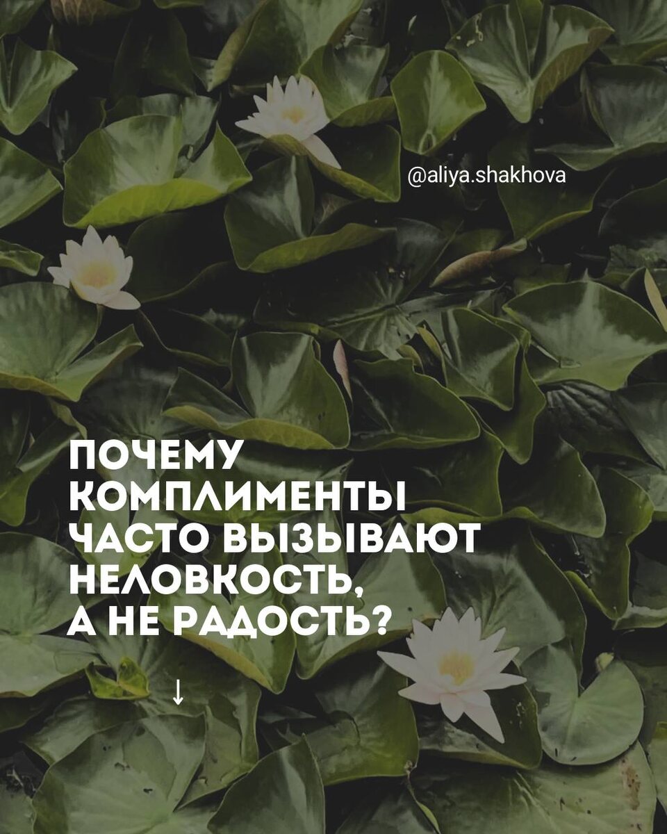 Почему комплименты часто вызывают неловкость, а не радость? — «Ты так похорошела!🤩» — говорит он. — «Ой.. ну перестань, хи-хи» — отвечаешь, а внутри: он наверное всем так говорит, ему точно что-то от меня надо…— мысленно додумала! — «Вау! Вы сделали крутую работу!» — «Ой да вы что, это всё команда. А сколько еще предстоит…» — ты додумываешь, что комплимент — это сигнал работать еще усерднее. 👆🏻И эти сценарии не дают признать любовь от мира. Мир отдает, а ты не принимаешь. Везде видишь угрозы и подвох. Это проявление неосознанного самоабьюза. Когда сама же делаешь себе больно, а потом ждешь от себя ресурсного состояния. Так не работает. Нужно менять отношение к себе. Можно научиться благодарить и принимать комплименты. Сделать так, чтобы ты чувствовала себя спокойно, уверенно. Ведь ты и правда достойна, чтобы тобой восхищались. А если у вас не так, и вы каждый раз ощущаете проблемы с принятием — это и есть привычка себя абьюзить, которую нужно менять. В блоге я подробно раскры