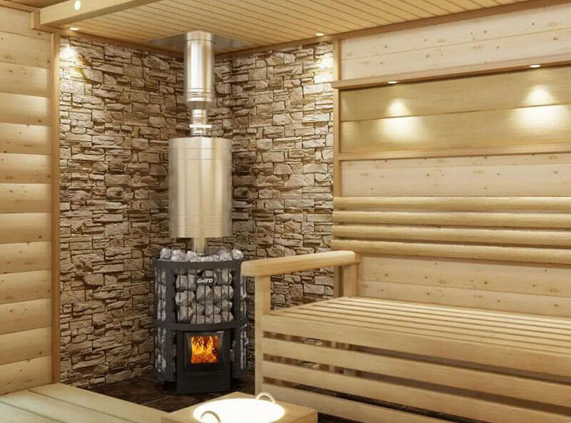 - Вид печного оборудования. Каменки имеют разные особенности строения и монтажа в доме. Металлические быстро и сильно нагреваются, каменные, керамические и кирпичные — имеют свои отличительные черты, но в целом хорошо передают тепло в окружающее пространство.