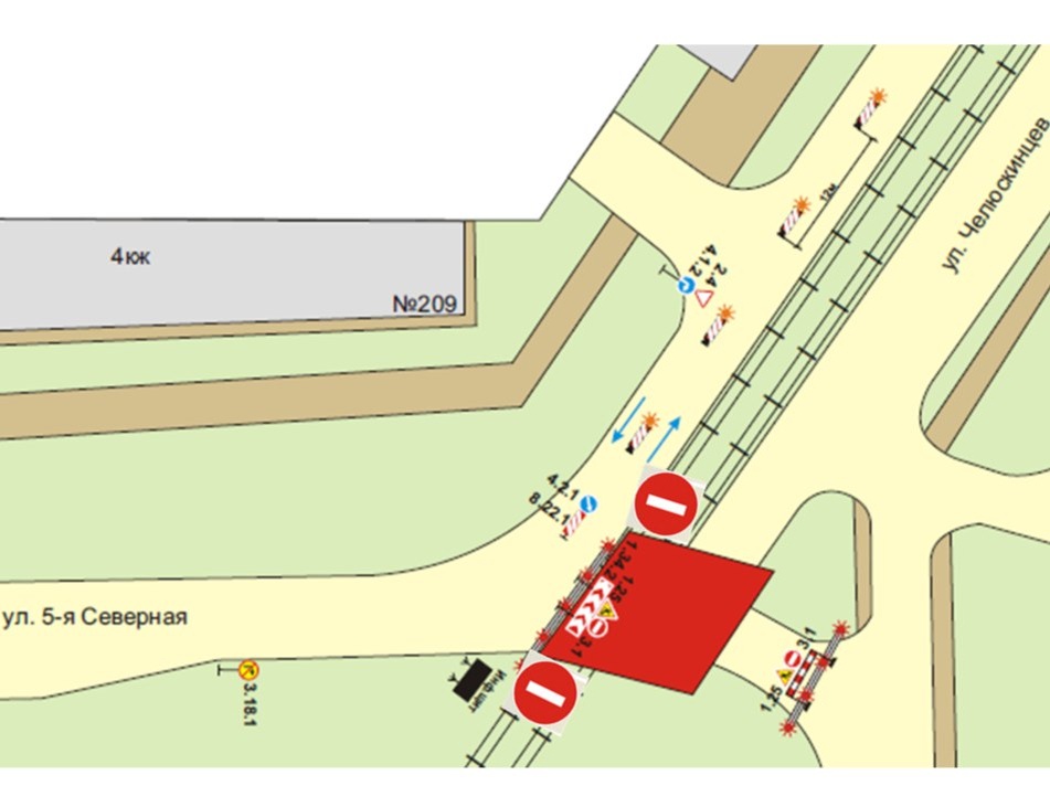В Омске с 20:00 5 сентября до 5:00 8 сентября будет перекрыт участок улицы Челюскинцев на пересечении с улицей 5-я Северная для капитального ремонта трамвайного пути. По нечетной стороне улицы организуют двустороннее движение. Водителей просят строго соблюдать временные дорожные знаки, пешеходам — меры безопасности. Фото: пресс-центр администрации Омска