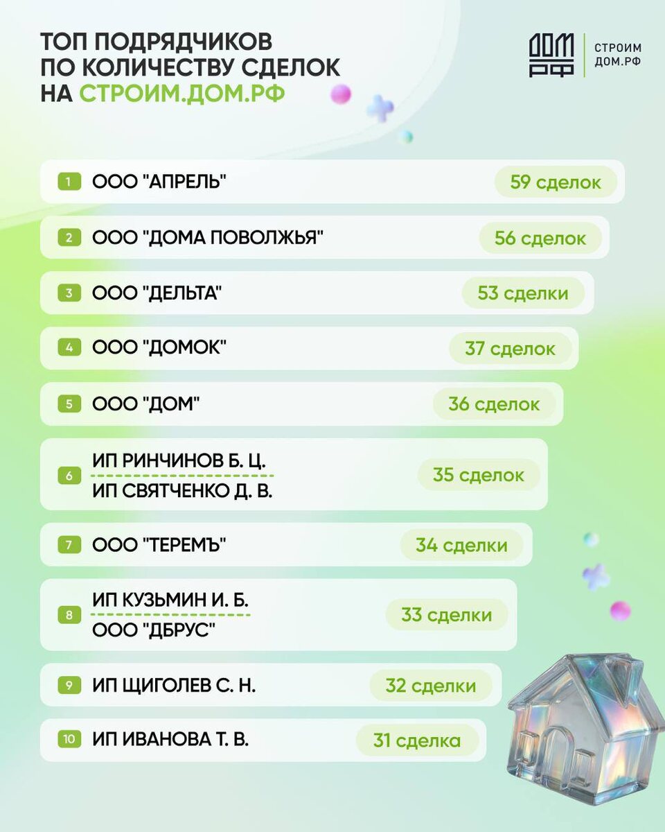 🏆 Строительная компания "Апрель" — №1 среди подрядчиков на Дом.РФ! Уважаемые клиенты и друзья, рады поделиться отличной новостью — наша компания заняла 1 место в рейтинге подрядчиков по количеству сделок на портале Дом.РФ 🔥 Это результат доверия наших заказчиков и слаженной работы всей команды. Для нас особенно важно, что так много семей выбрали именно нас для строительства своего дома! Мы искренне благодарим вас за выбор и доверие! Мы продолжим держать высокую планку качества, чтобы ваш путь к дому мечты был максимально комфортным и надежным 🤝 🏡 Постройте и вы свой дом с нами! 📞 Подробности уточняйте у наших менеджеров: 8 925 094 00 72