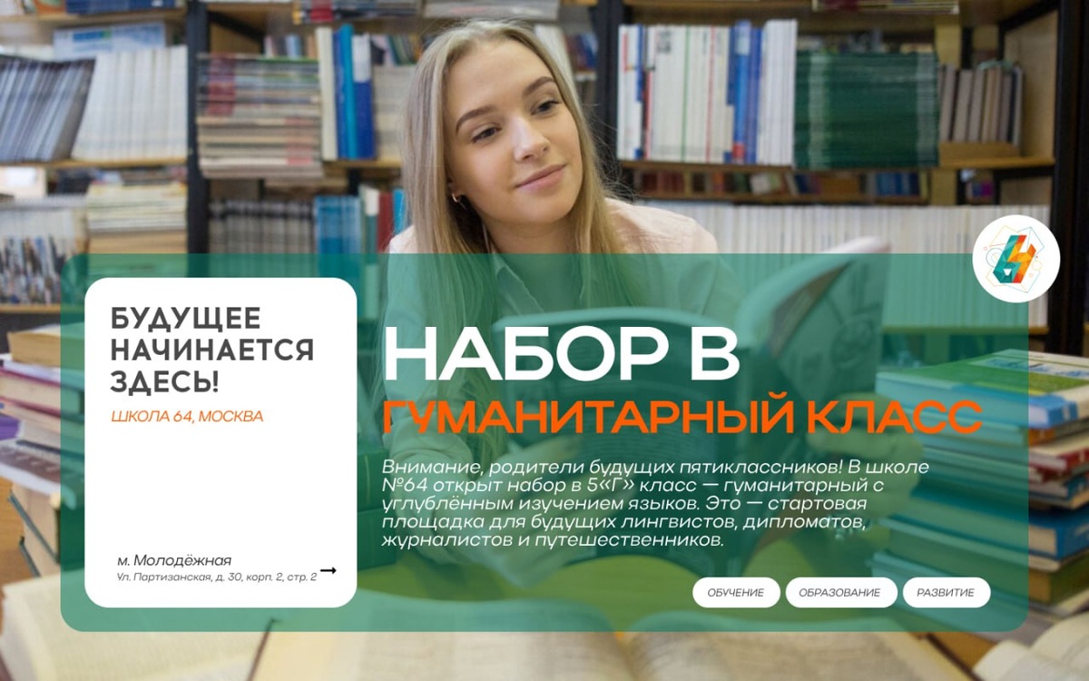 Внимание, родители будущих пятиклассников! В школе №64 открыт набор в 5 «Г» класс — гуманитарный с углублённым изучением языков. Это — стартовая площадка для будущих лингвистов, дипломатов, журналистов и путешественников. Английский язык на серьезном уровне