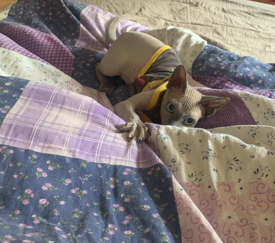 Сегодня утром я снова убедилась: сфинкс — это не просто кошка. В этой породе есть что-то особенное, и временами кажется, что у неё явно проявляются черты собаки. Моя Бан проснулась раньше меня. Первым делом она сняла свой свитер — да-да, сфинксы очень любят тепло, но иногда им хочется свободы. И вот тут началось настоящее шоу: Бан носилась по квартире, как маленький ураган, прыгала на кровать, скакала по мне, словно горная козочка, и даже пару раз специально разбудила меня, пробежавшись прямо по телу. Сначала я думала: обычные кошачьи шалости, ничего особенного. Но дальше всё стало куда интереснее. Бан взяла свою любимую игрушечную мышку и начала приносить её мне в зубах. Она клала её рядом и смотрела так, будто говорила: «Брось ещё!» Я поддалась на эту игру — кидала мышь, а она с азартом приносила её обратно. В этот момент я поняла: это же чисто собачья привычка! Тем не менее, Бан оставалась кошкой до кончиков лап. Пока она бежала за мышкой, успевала спрыгнуть с дивана, сделать с