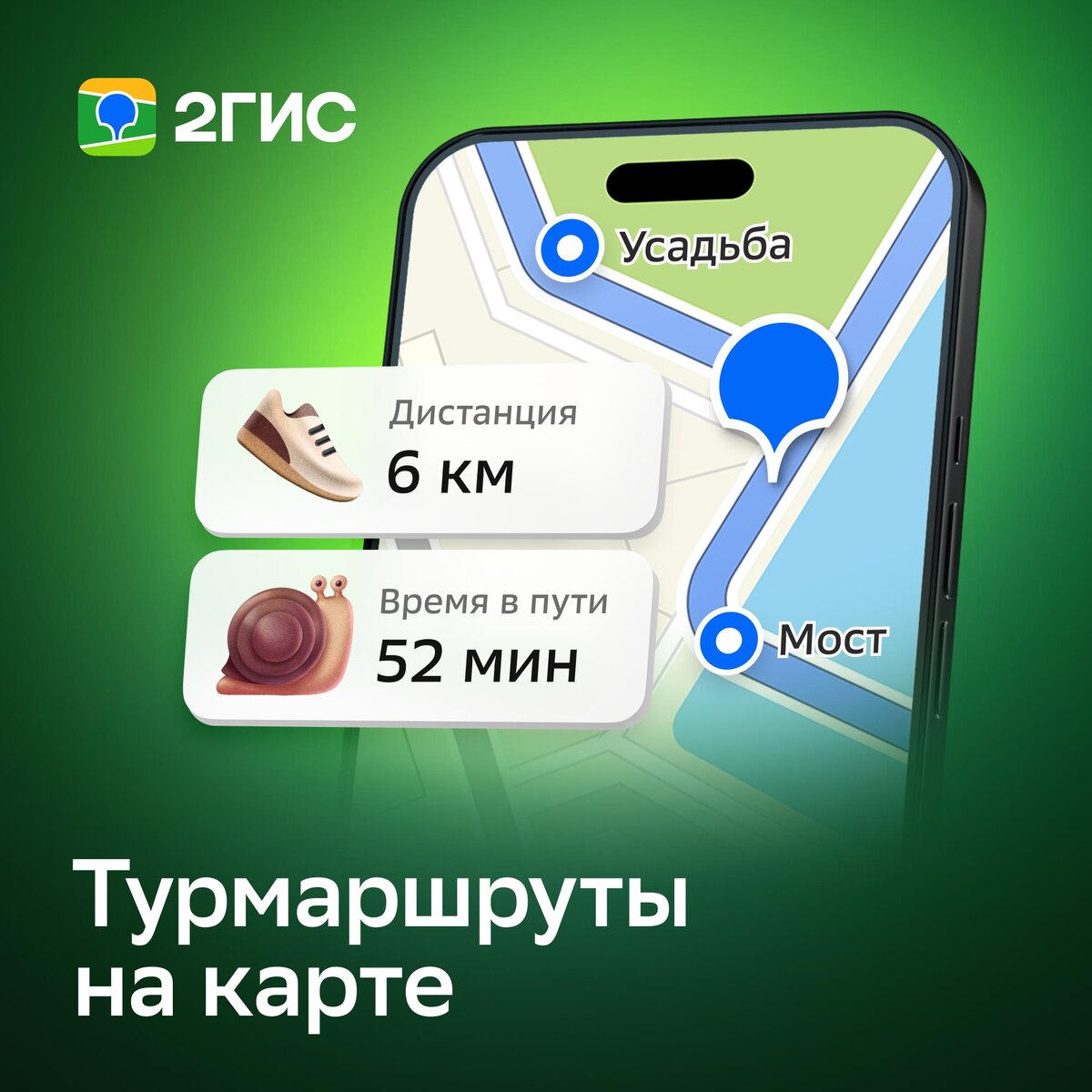 🟢 Новые турмаршруты в 2ГИС Более 1500 маршрутов по городам и за их пределами: от барных и культурных до природных троп и походов на вершины. Прогулка по Замоскворечью, каньон Псахо, Петроградская сторона, Лермонтовские места — и это только начало. Маршруты — с достопримечательностями, описанием, длиной, временем в пути и полезной инфраструктурой. Можно идти пешком, ехать на велосипеде или отправиться в автопутешествие. И всё это работает прямо в 2ГИС — и онлайн, и офлайн. ➡️ Введите «турмаршрут» в поиск и выбирайте путь, который захочется пройти.