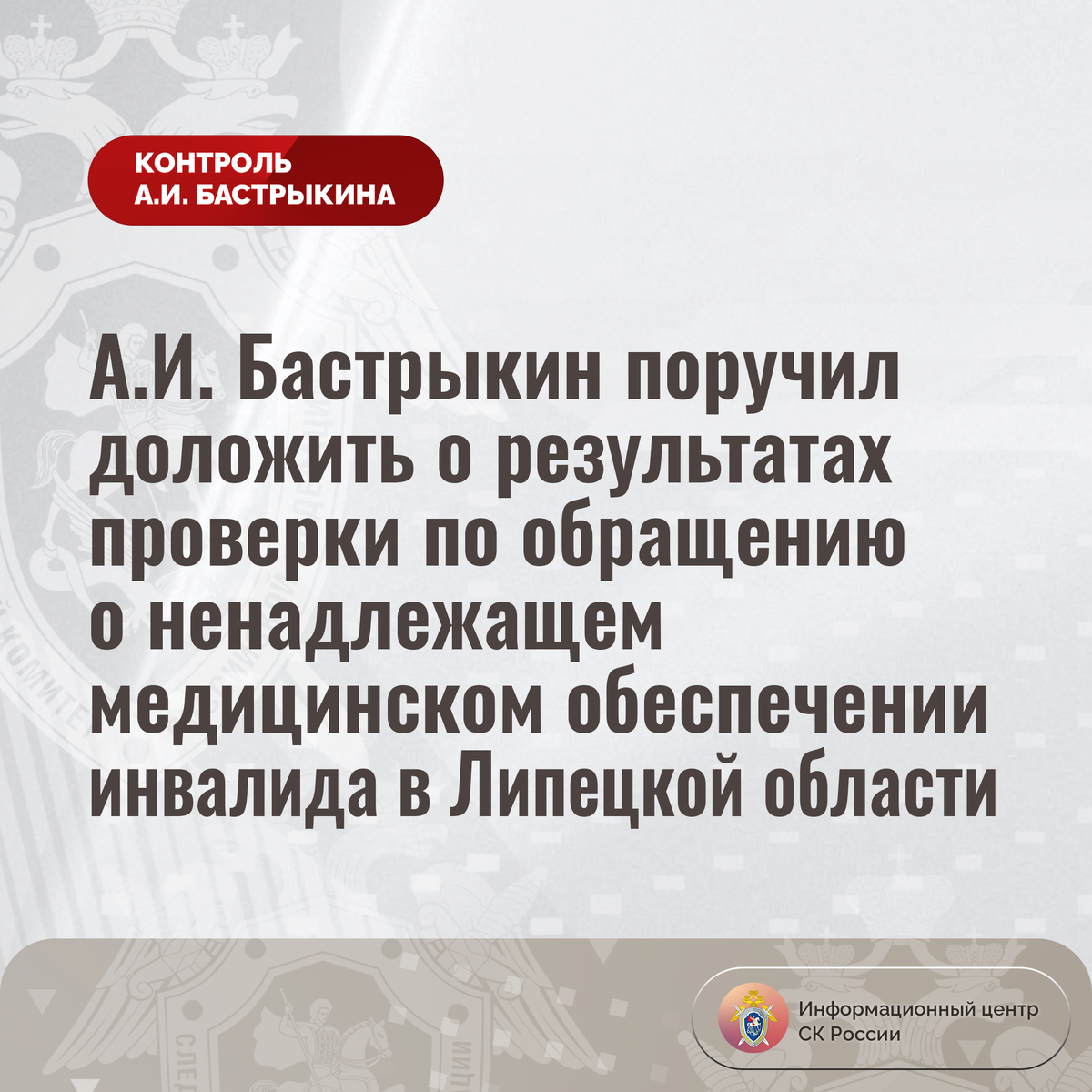 А.И. Бастрыкин поручил доложить о результатах проверки по обращению о ненадлежащем медицинском обеспечении инвалида в Липецкой области