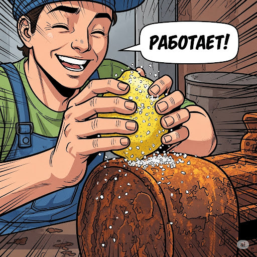 Лимонная кислота, содержащаяся в лимоне, вступает в реакцию с оксидом железа (ржавчиной) и растворяет его. А соль помогает механически удалить оставшиеся частички. Это простой, экологичный и невероятно эффективный способ вернуть металлу блеск!