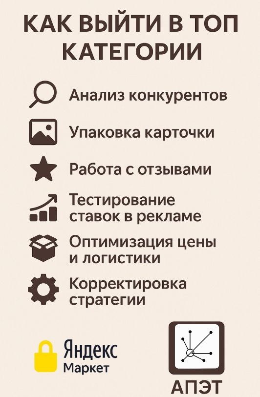 Хотите, чтобы ваша карточка была на первых строчках, но не знаете, с чего начать? В новом проекте АПЭТ мы даём пошаговый алгоритм и сопровождаем селлеров до результата. 🔍 Анализ конкурентов 📸 Упаковка карточки (фото, заголовок, описание) ⭐️ Работа с отзывами и рейтингом 📈 Тестирование ставок в рекламе 📦 Оптимизация цены и логистики 📊 Еженедельный мониторинг позиций ⚙️ Корректировка стратегии на основе данных Присоединяйтесь к АПЭТ - откройте для себя Яндекс Маркет без рисков и постройте бизнес с устойчивым ростом.