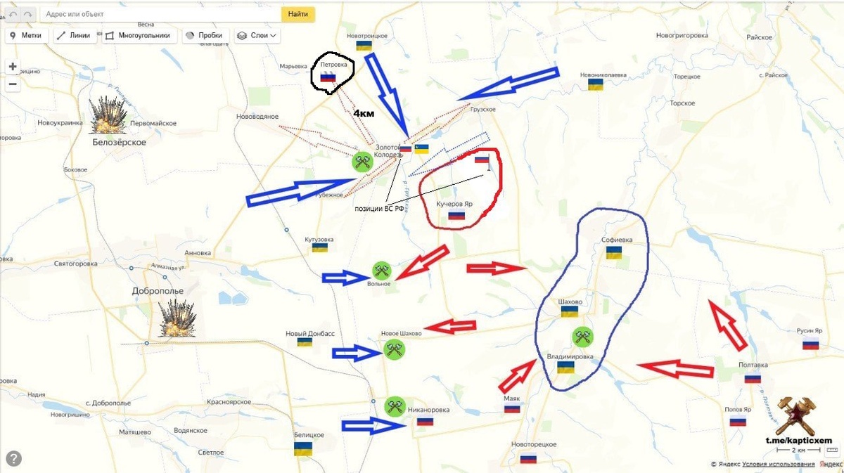 В ответ на пост И еще новости с этого района боевых действий. Пришла очень интересная геопривязка от СК видео боя 82-ой бригады ВСУ в населенном пункте Петровка, что в 4 километрах севернее от Золотого Колодезя в глубь территории противника. Маленькая деревушка Петровка находится на важной логистической трассе Доброполье-Краматорск, в котором присутствуют наши военные. схемы и карты