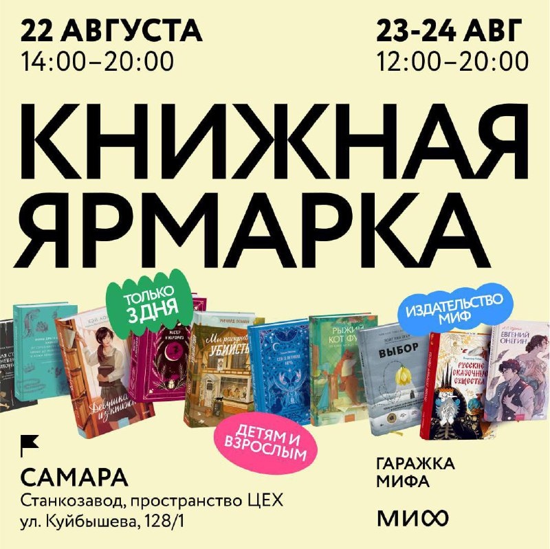 22-24 августа пройдет гаражка издательства МИФ на Станкозаводе 📚 Вас ждут бестселлеры и новинки по культуре, психологии, бизнесу, серия «Мифы от и до», классика из серий «Вечные истории» и «Вечные истории.Young Adult». Также вас ждут фэнтези, детективы и романы от МИФ.Прозы, комиксы, развивающая и художественная литература для детей, подарочные издания. А в субботу приглашаем на лекции от авторов МИФа — писателя и сценариста Дмитрия Билика, исследовательницы российских кладбищ Маргариты Николаевой: 🪶«Как создать роман на стыке разных жанров?» 23 августа, 14:00 Узнаем, как Дмитрий работал над фэнтезийной составляющей романа «Имперский сыщик», как закручивал детективную интригу и — погружал героев в сеттинг альтернативной дореволюционной России. О спикере: Дмитрий Билик — сценарист, писатель в жанрах фантастики и фэнтези. В МИФе вышла книга «Имперский сыщик». Ведет телеграм-канал «Билитристика». 🪦«Истории кладбищ, рассказанные их жителями» 23 августа, 16:00 О чем может рассказ