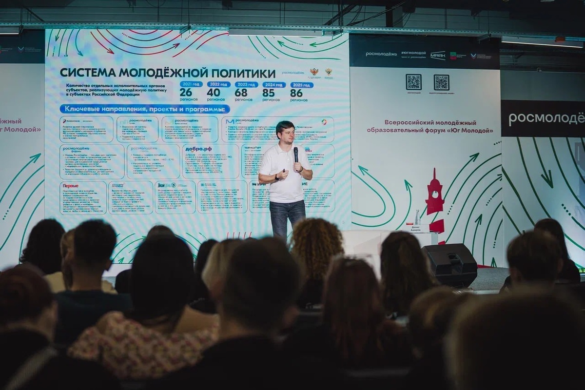 «Юг Молодой». Идеи, действия, проекты💪✨ Плотный график второго дня форума включил в себя не только образовательные блоки и время для личного развития, но и ключевое событие — встречу с руководством Росмолодёжи. ⚡️ На встрече со статс-секретарём – заместителем руководителя Росмолодёжи Денисом Ашировым участники обсудили актуальные вопросы молодёжной политики и её роль в формировании будущего России. Состоялся прямой и открытый диалог. В неформальной обстановке говорили о поддержке молодёжных инициатив, развитии добровольчества, перспективах создания новых проектов и возможностях, которые открывает перед участниками форум. Это была возможность получить ценные советы и задать волнующие вопросы на самом высоком уровне!👍 «Мы живём в непростое, но важное время. Время, когда особенно нужно укреплять доверие, солидарность, культуру уважения и диалога. Именно поэтому форум «Юг Молодой» строится вокруг созидания — в идеях, действиях, проектах. Но за каждым обсуждением — реальная задача: у