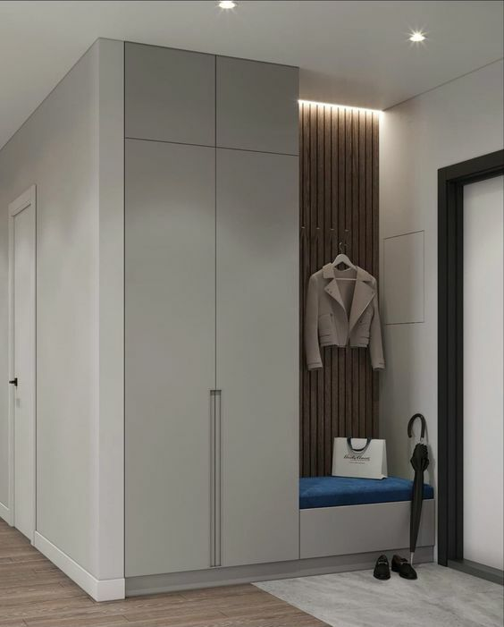Идеальная прихожая: Распашной шкаф и банкетка — дуэт для порядка и уюта