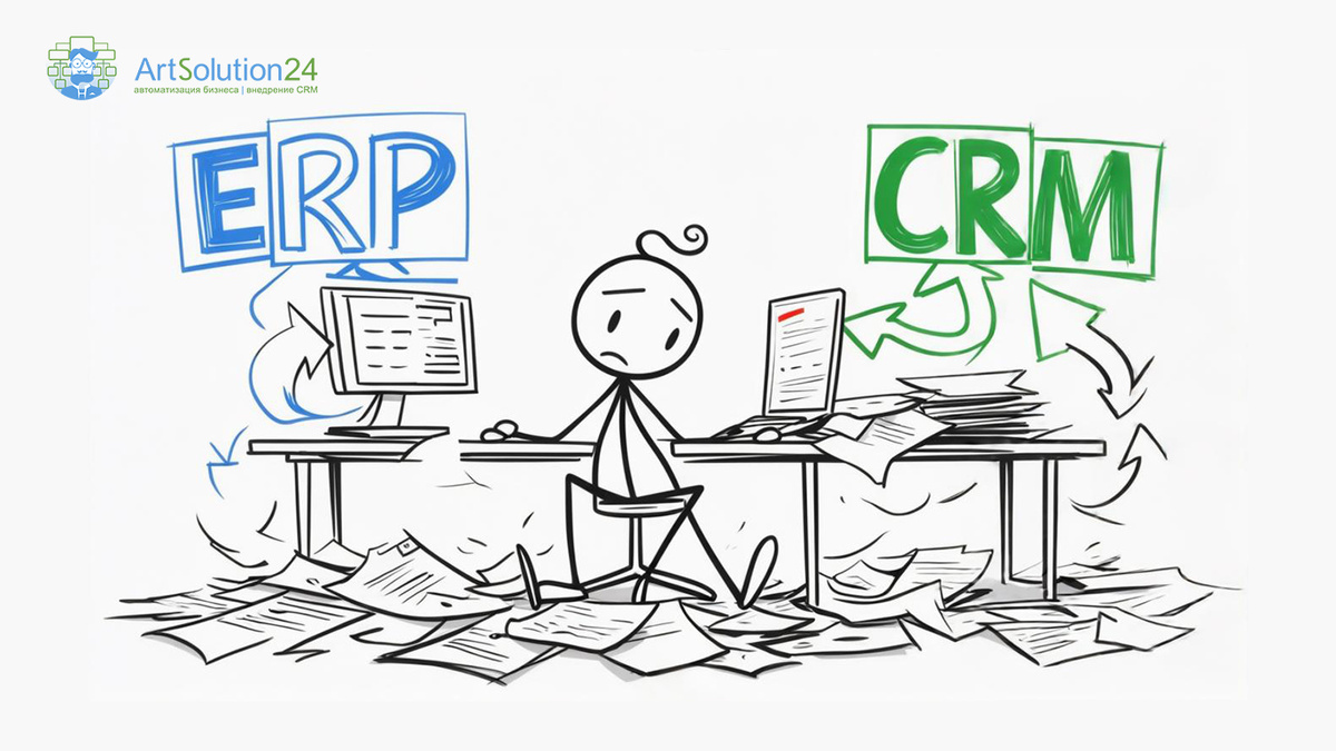 Но встроенный CRM-модуль оказался слабым. Для отдела продаж развернули отдельный Битрикс24. ERP и CRM какое-то время существовали параллельно. Но перенос данных вручную приводил к потерям, ошибкам