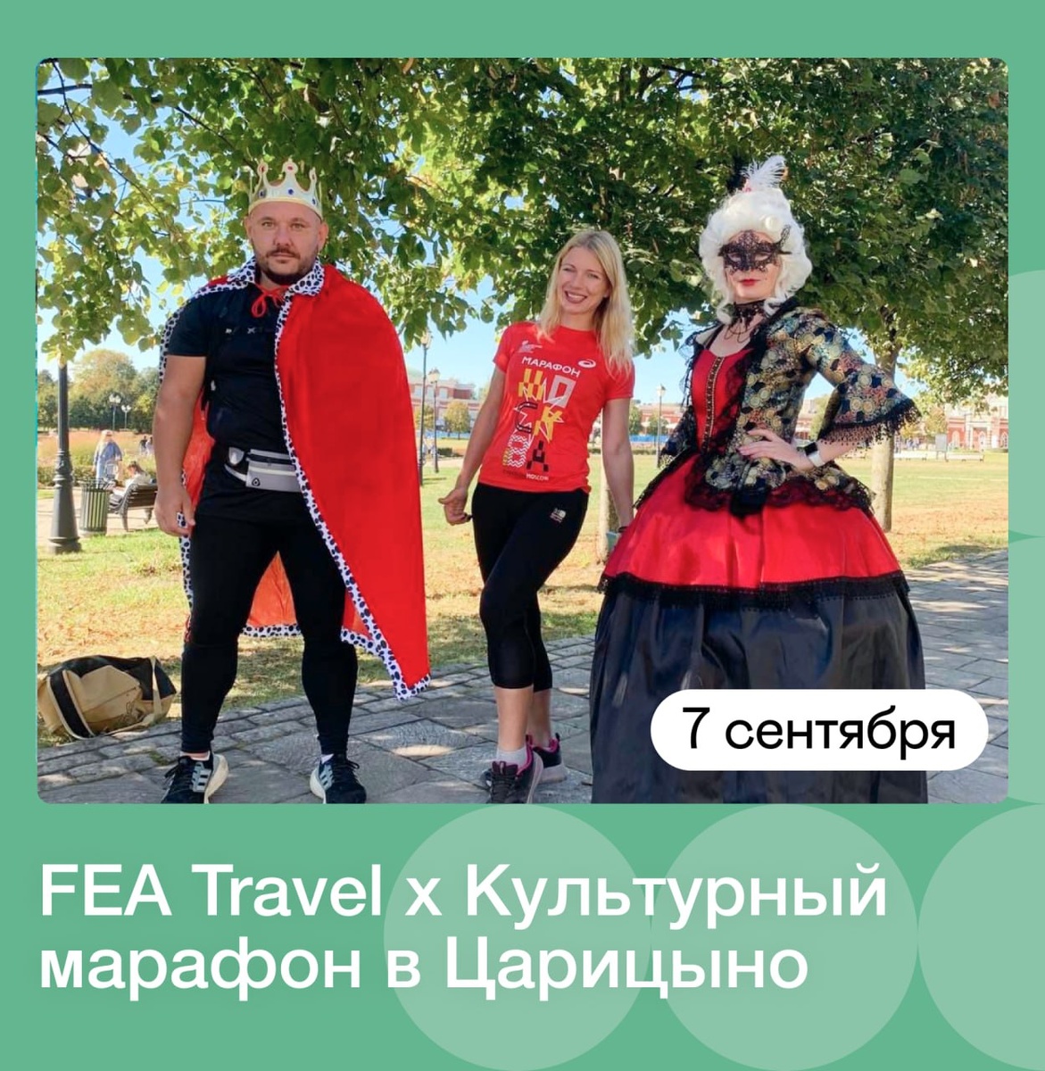 Друзья, и прервемся на культурный анонс: спешим сообщить, что бренд FEA Travel является партнером одного из самых красивых забегов Москвы — Культурного марафон в Царицыно, который пройдет уже 7 сентября🩵 Для забега разработана уникальная трасса маршрута марафона, проходящая по исторической и парковой территории ГМЗ «Царицыно» с эксклюзивными видовыми панорамами на ландшафтный и архитектурный ансамбль. В марафоне примут участие спортсмены-профессионалы и любители спорта всех возрастов (начиная с двух лет) со всех городов России. ➡️ Спортсменам будут предложены 7 дистанций, в том числе, культурная, посвященная 250-летию со дня основания «Царицыно», протяженностью 1775 метров. Расстояние дистанции символическое — в него заложен год приобретения деревни Черная Грязь и основания «Царицыно» Екатериной Великой Будем ждать вас на этом ярком активном празднике. Для всех участников приготовлены специальные подарки от нашего бренда, а также скидка 20% на всю продукцию по промокоду FEATSAR20