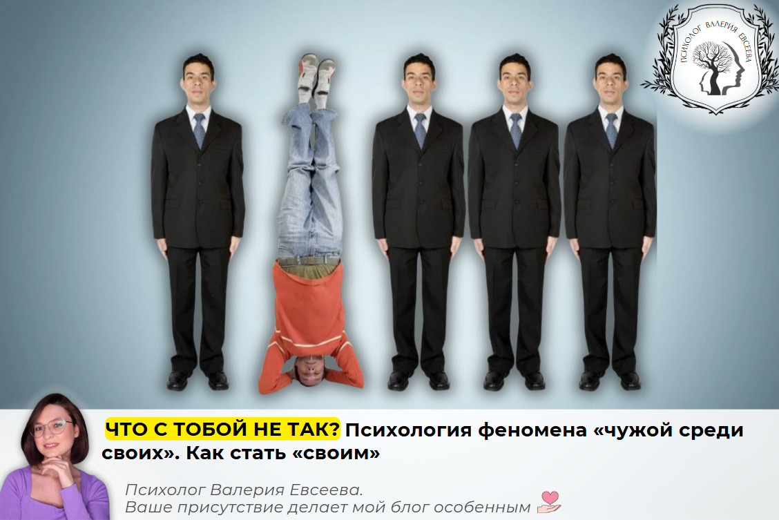 «Меня не покидает чувство, будто я не вписываюсь…» - это когда, находясь в знакомой среде, считаешь себя чужим. Это может ощущаться на работе, с друзьями или даже в собственной семье. А может ощущаться глобально, будто ты не вписываешься в правила этой жизни (особенно, когда что-то не получается или ты чему-то не соответствуешь).