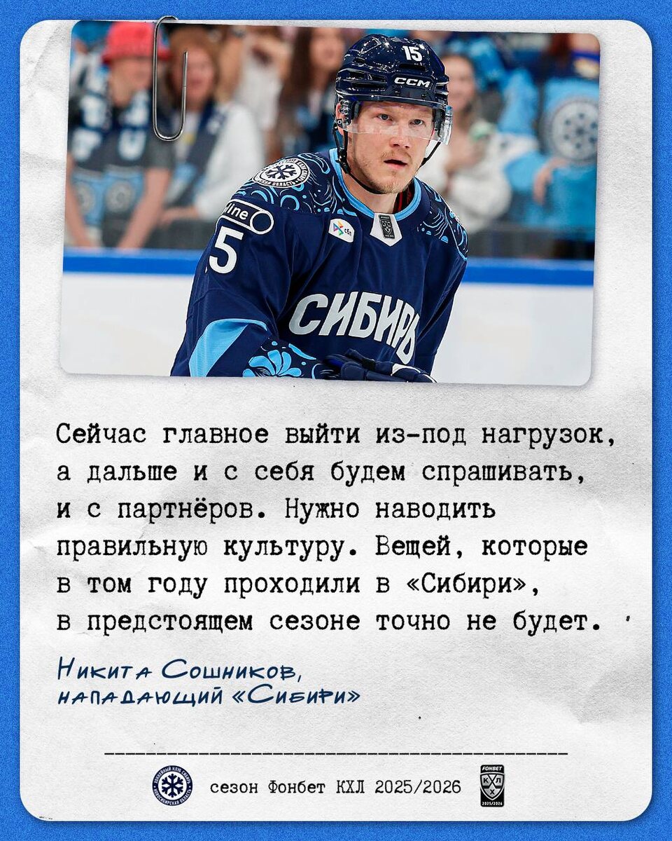 ❄️ Нападающий «Сибири» Никита Сошников рассказал KHL.ru о переходе в новосибирский клуб, дебюте при 10 тысячах зрителей, своей миссии в новой команде и давнем знакомстве с Вадимом Епанчинцевым.