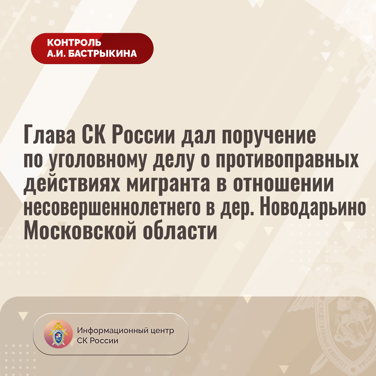 Глава СК России дал поручение по уголовному делу о противоправных действиях мигранта в отношении несовершеннолетнего