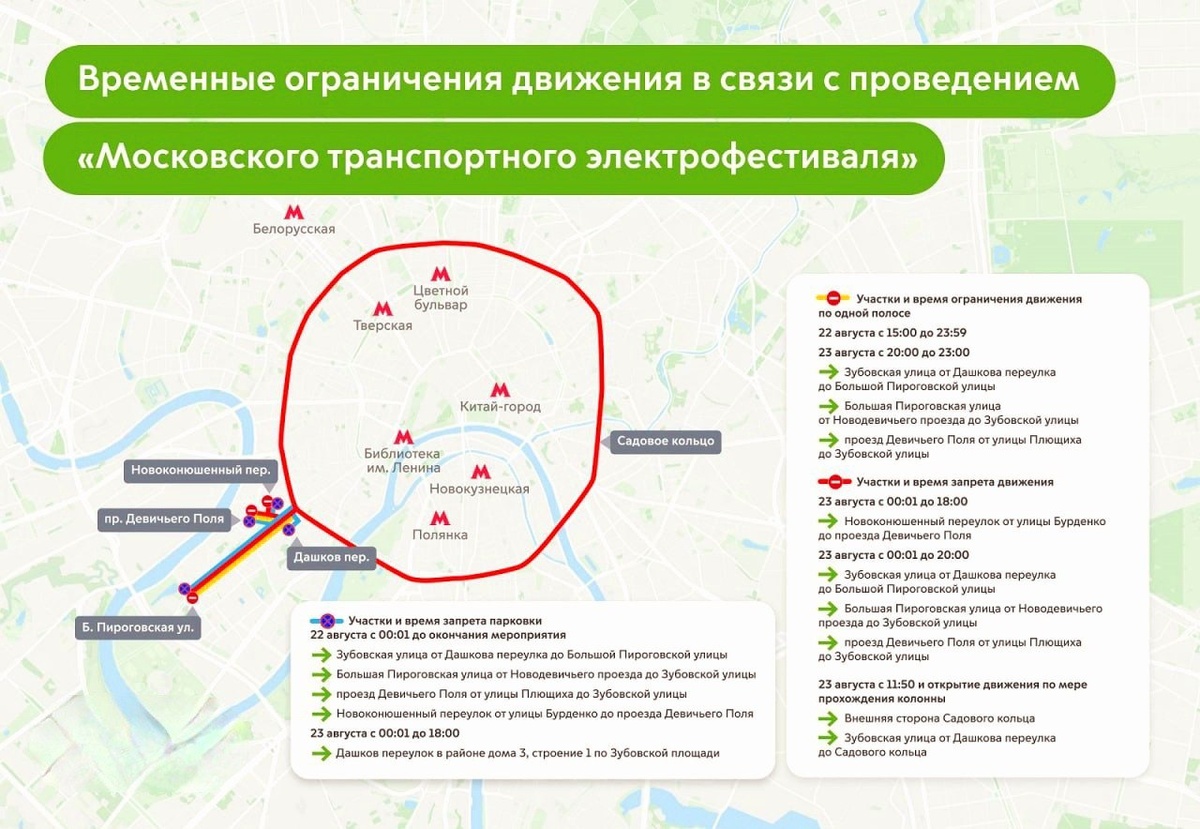 ⛔️ 🚗 Движение по Садовому кольцу перекроют в субботу в связи с проведением Московского транспортного электрофестиваля, сообщили местные власти