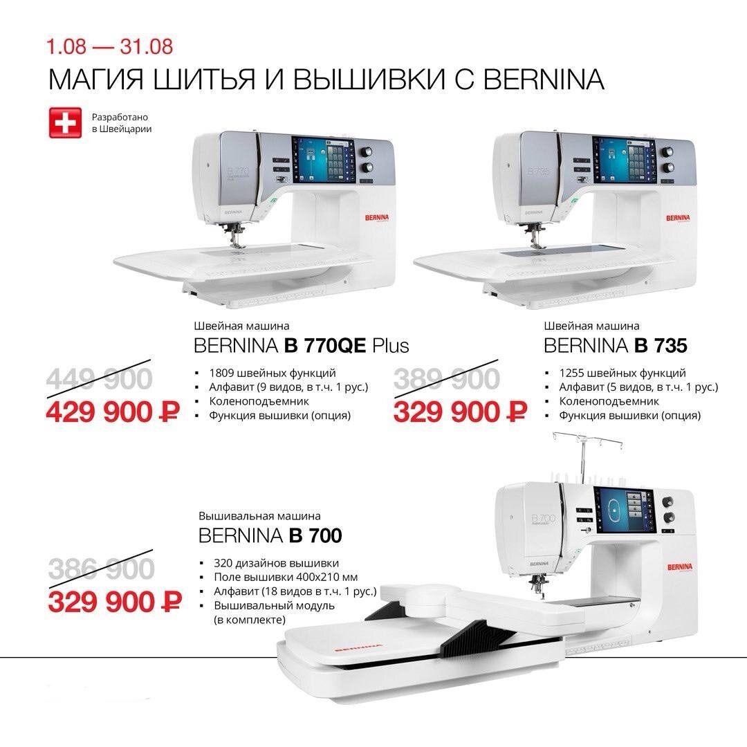 Главный вопрос: «Сколько стоит и до какого числа действует предложение?» Отвечаем: 🏷️Вышивальная машина BERNINA B700 + вышивальный модуль - 329 900₽ вместо 379 900₽, ВЫГОДА 50 000₽! 🏷️Швейная машина BERNINA B735- 329 900₽ вместо 389 900₽, ВЫГОДА 60 000₽! 🏷️Швейно-вышивальная BERNINA B735 + вышивальный модуль 449 800₽ вместо 509 800₽, ВЫГОДА 60 000₽! 🏷️Швейная машина BERNINA B770QE PLUS - 429 900₽ вместо 499 900₽, ВЫГОДА 70 000₽! 🏷️Швейно-вышивальная BERNINA B770QE PLUS + вышивальный модуль - 549 800₽ вместо 619 800₽, 70 000₽! Это самые популярные швейно-вышивальные машины не только в России 🔥 Можно воспользоваться услугой трейд-ин, чтобы выгода стала ещё больше. 🎁 Бесплатная доставка оборудования до вашего дома, ✅ Тест-драйв вживую в магазине или онлайн, 👛 Рассрочка или кредит, 🔄 Трейд-ин, Телефон для связи +7 920 413 25 83 📲 🔗 Наш сайт BARRA.PRO 📍BARRA,г. Воронеж, ул.Средне-Московская 5