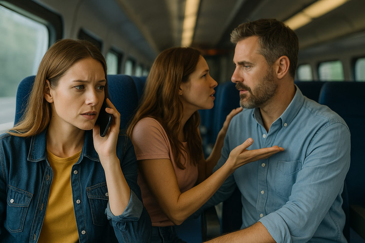 Вагон сначала вздохнул, потом притих. Женщина перестала всхлипывать и повернулась ко мне с таким выражением лица, будто я пришла на её кухню и открыла чужую кастрюлю. Мужчина поднял брови и… улыбнулся. Не нагло — скорее растерянно, как улыбается человек, которого поставили на паузу и вдруг включили.