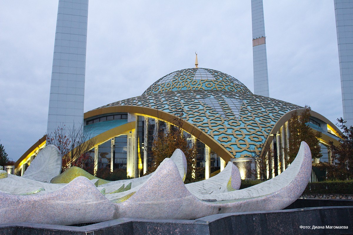 Мечеть Сердце матери Мечеть «Сердце матери» в Аргуне — это первая в России мечеть, построенная в нетипичном для мусульманской культуры стиле хай-тек. Проект здания разработал турецкий архитектор Дениз Байкан. Просторный молитвенный зал способен вместить до 15 тысяч человек. По задумке, ультрасовременная мечеть внешне напоминает космический корабль и изменяет цвет в зависимости от времени суток, погоды и подсветки. Так, днем своды храма могут менять цвет от пепельного до лазурного, а ночью здание освещают 50 тысяч светодиодных ламп и сотня прожекторов. Территория вокруг мечети тоже достойна внимания. Перед центральным входом расположен фонтан с чашей в виде ракушки. 📌Мечеть Сердце матери на карте #чечня #мечеть #сердцематери