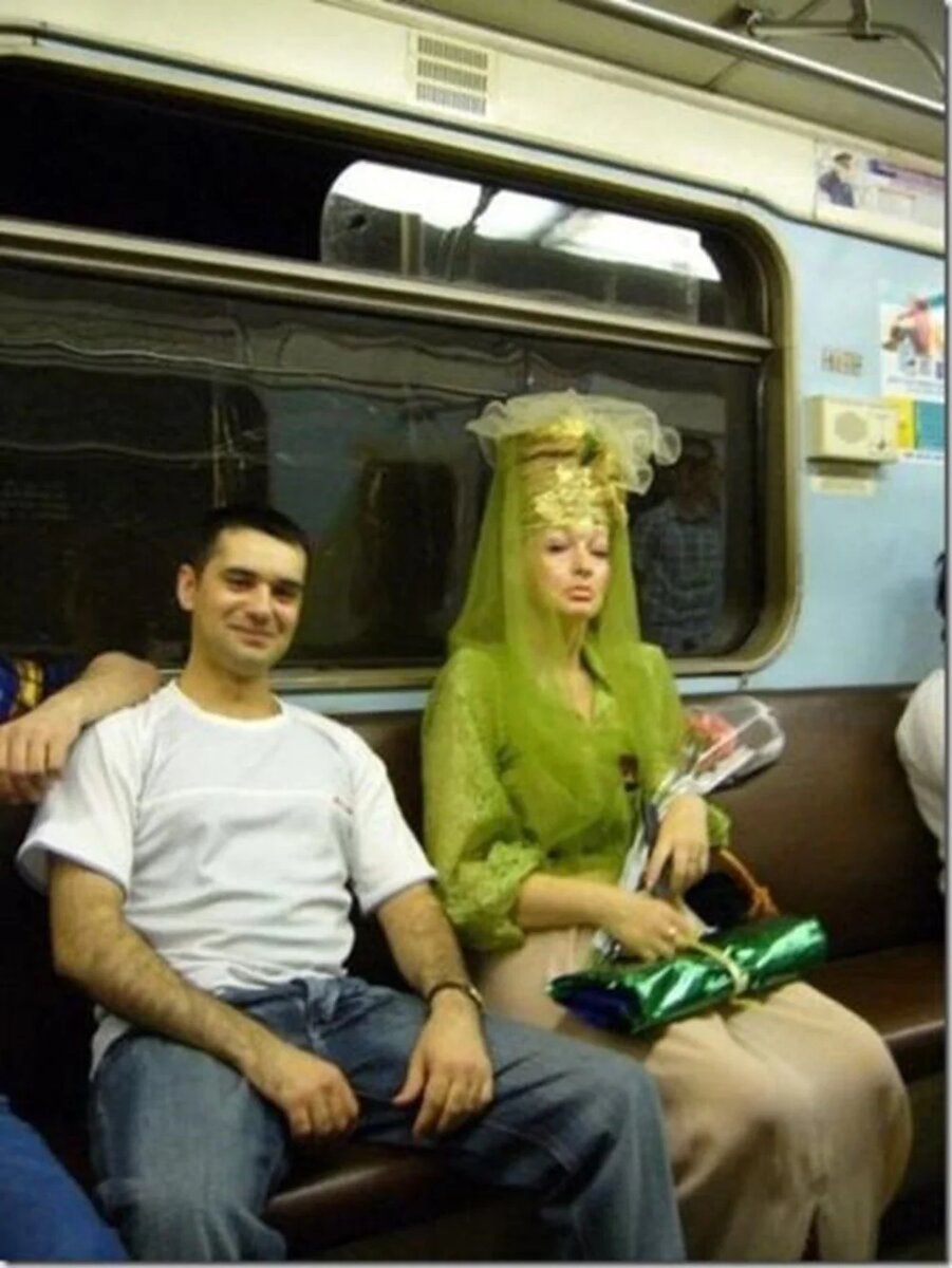Подземка, привычным способом в удобных вагонах, перевозит людей с одного конца города в другой, без пробок и прочих преград надземного транспорта. Сколько удивительных людей можно встретить под землей, привлекающих стилистикой, поведением. Здесь влюбляются, женятся, перевозят на престижных местах, любимых питомцев, празднуют знаменательные даты, демонстрируют моду в одежде и прическах. №1. Женщина явно потерялась во времени, возомнила себя царицей Тамарой или все просто, привлекает внимание экзотической одеждой. №2. Пандемия напугала до такой степени, что решил мужик: никогда не снимать маску в виде лошадиной головы. №3. Ни понять: сам Чингачгук спустился в подземку, или средневековый вельможа решил прокатиться в вагоне метро. №4.Ничего себе балахончик, тут и петушиный гребешок, и свиное рыльце. №5. На огонь и красивых собачек можно смотреть вечно, никогда не расставаться, а чтобы не потерять, возить в рюкзачке на спине. №6. Нацепил на голову чепчик с дополнительными глазами, на н