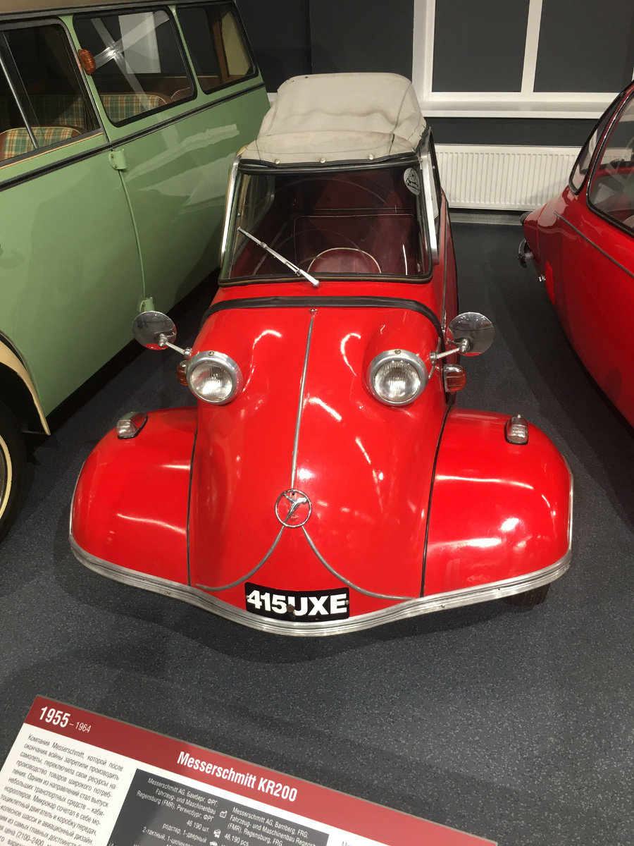 Оказывается компании Мессершмитт после войны запретили производить самолеты и они переключились на товары народного потребления. В частности выпускали такой недорогой микрокар (три колеса, двигатель от мотоцикла и коробка передач). Написано что дизайн авиационный, в этом я не спец, напоминает ли вам эта машина самолет?