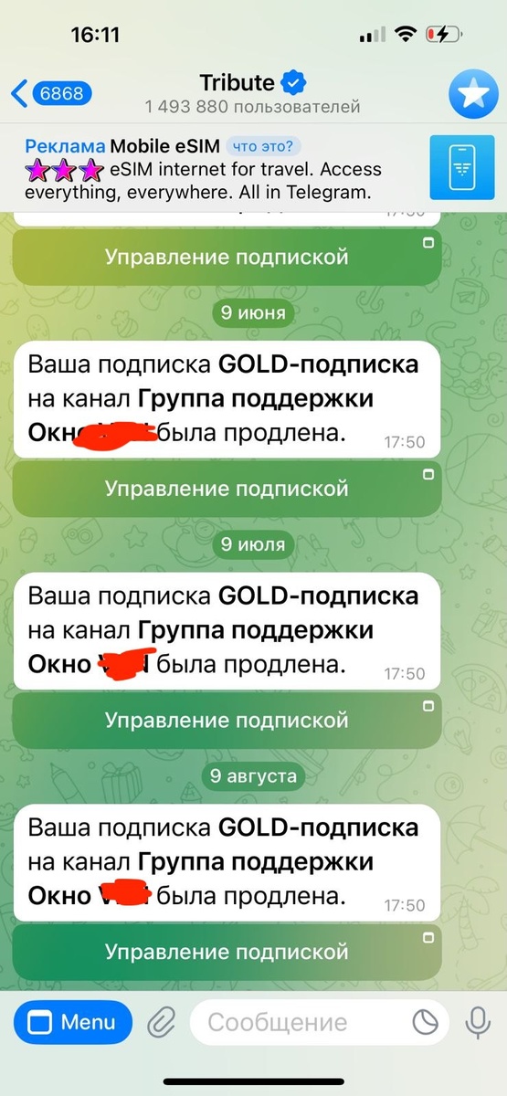 Стало понятно, что это какой-то бот в Telegram, на который когда-то давно подписался человек, но как его теперь найти? Так вот в Телеграме сторонние бот-подписки реализованы через бота @Tribute. Именно здесь надо искать активные подписки внутри приложения. До сих пор не уверены, что их нельзя реализовать через сторонние решения, но думаем, тогда бы и в выписке стоял бы другой получатель.