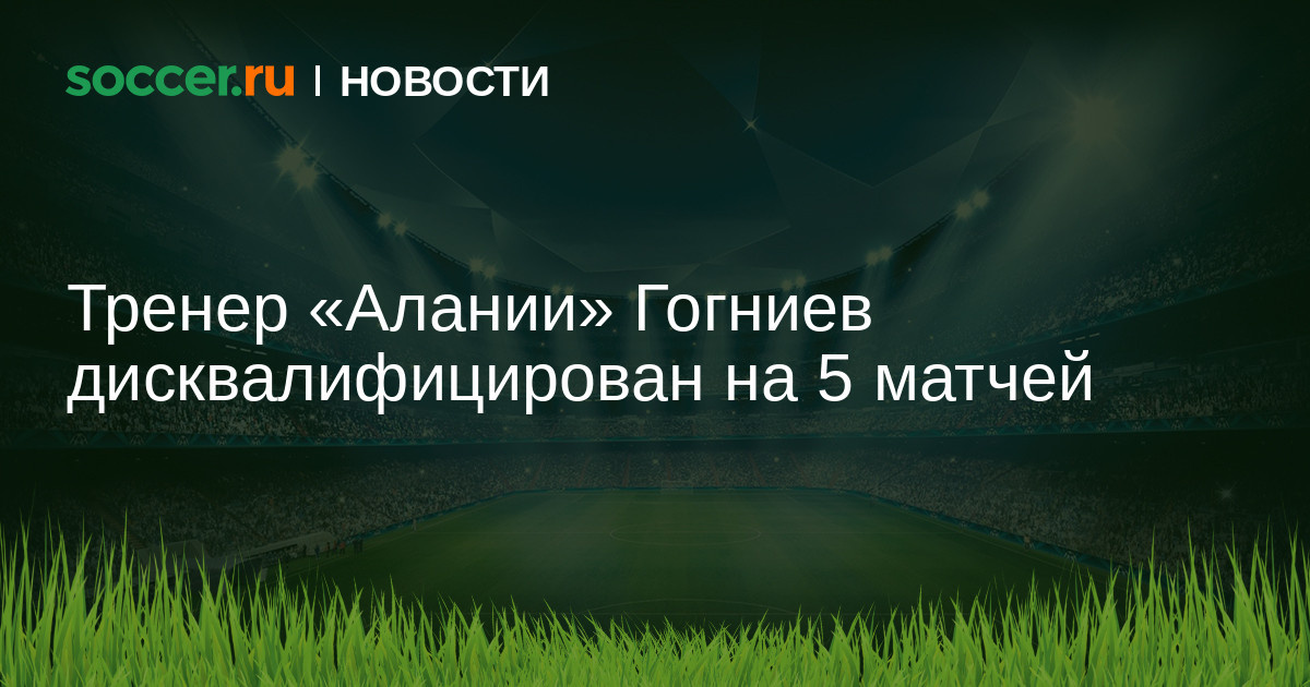 Контрольно‑дисциплинарный комитет Российского футбольного союза (КДК РФС) принял решение дисквалифицировать главного тренера «Алании» Спартака Гогниева на пять матчей по итогам игры Второй лиги с «Тюменью». Об этом сообщил глава КДК Артур Григорьянц. Гогниев был удалён за две жёлтые карточки. После предупреждения он в агрессивной манере оскорблял арбитров, после того как покинул поле, кинул две бутылки с водой на поле и ударил скамейку запасных рукой. Он принял участие в заседании, не скрывал нарушений, всё признал. Причиной такого поведения назвал судейство. Это его не оправдывает, он у нас на заседании уже четвёртый раз. У него уже были штрафы, дисквалификации, это характеризует человека и его манеру поведения, степень агрессии на поле. Решение — за оскорбительное поведение четыре реальных матча дисквалификации, не считая автоматической дисквалификации. То есть общая — пять матчей, а за неспортивное поведение штраф 25 тысяч рублей, это максимум по Второй лиге.