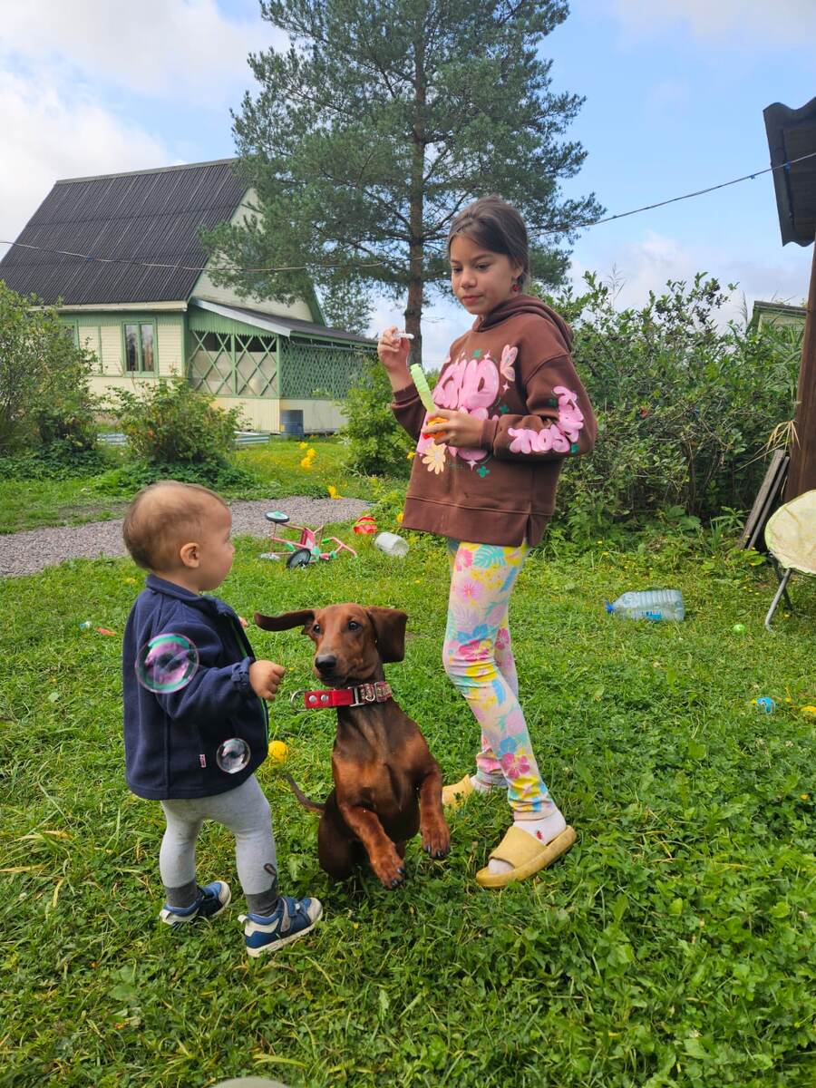 Я опять в метро, двигаюсь к дому, и пока подниму вам настроение сыночкой-корзиночкой, милым Марсиком. Если вдруг кто забыл, то это брат Барсы. Марсик отдыхает на даче, растёт, набирается сил,а заодно дуркует со своими человеческими детёнышами. А в принципе, чем ещё должны заниматься дети летом? Конечно, баловаться и предаваться шальным игрищам. В данным случае шальным триггером служат мыльные пузыри. Одни выдувают, другой схлопывает: Мам-Наташа в процессе снимает, это она умеет мастерски. Запечатлеть таксы-попрыгайчика в прыжке не так то просто, однако у нее получается. Вот после всех этих фото мне кажется, что я умею делать летающих такс. Или нет?