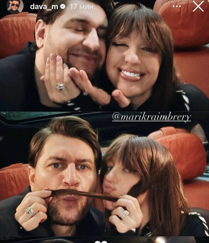 Давид Манукян, более известный как Дава, показал несколько снимков со своей женой Мари Краймбрери. На кадрах супруги строили смешные рожицы и радостно улыбались. По всей видимости, снимки были сделаны в салоне автомобиля после недавнего выступления певицы на Velvet Fest. На фото артистка позировала в комбинезоне с анималистичным принтом. В таком же наряде Краймбрери выступала на фестивале. К слову, Дава поддержал супругу на мероприятии. Он стоял за кулисами и наблюдал за выступлением певицы. Блогер подпевал ей и танцевал. Напомним, Мари Краймбрери и Дава рассекретили свой роман в феврале 2025 года. Тогда же они сообщили, что ждут ребенка. В марте звезды рассказали, что узаконили свои отношения. В мае 2025-го у пары родилась дочь. Краймбрери вскоре после рождения ребенка вышла на сцену. Она сейчас активно готовится к большому сольному концерту «Кто такая Мэри?», который пройдет в октябре. Дава признавался, что не против того, чтобы жена работала, если ей хочется.