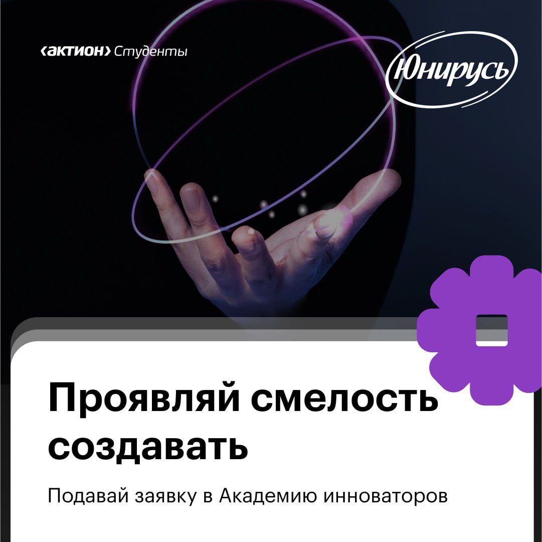 Приглашаем студентов в Академию инноваторов от ЮниРусь. Тебя ждут четыре недели полного погружения в мир исследований и разработок (R&D). Узнаешь, как появляются новые продукты и изобретения, и сможешь стать частью команды. Когда? С 18 августа по 30 сентября. Обучение стартует 2 сентября. Что будет? Все участники Академии получат сертификат о прохождении. Онлайн можно? Да, Академия пройдет полностью удаленно. Можно участвовать студентам из любых городов. Хватит ли мне времени? Короткие материалы специально адаптированы, чтобы ты мог легко изучить подходы компании к исследованиям и разработке. Будет несколько практических заданий с удобными дедлайнами — на решение организаторы дают около недели. Регистрируйся и читай подробности по этой ссылке>>